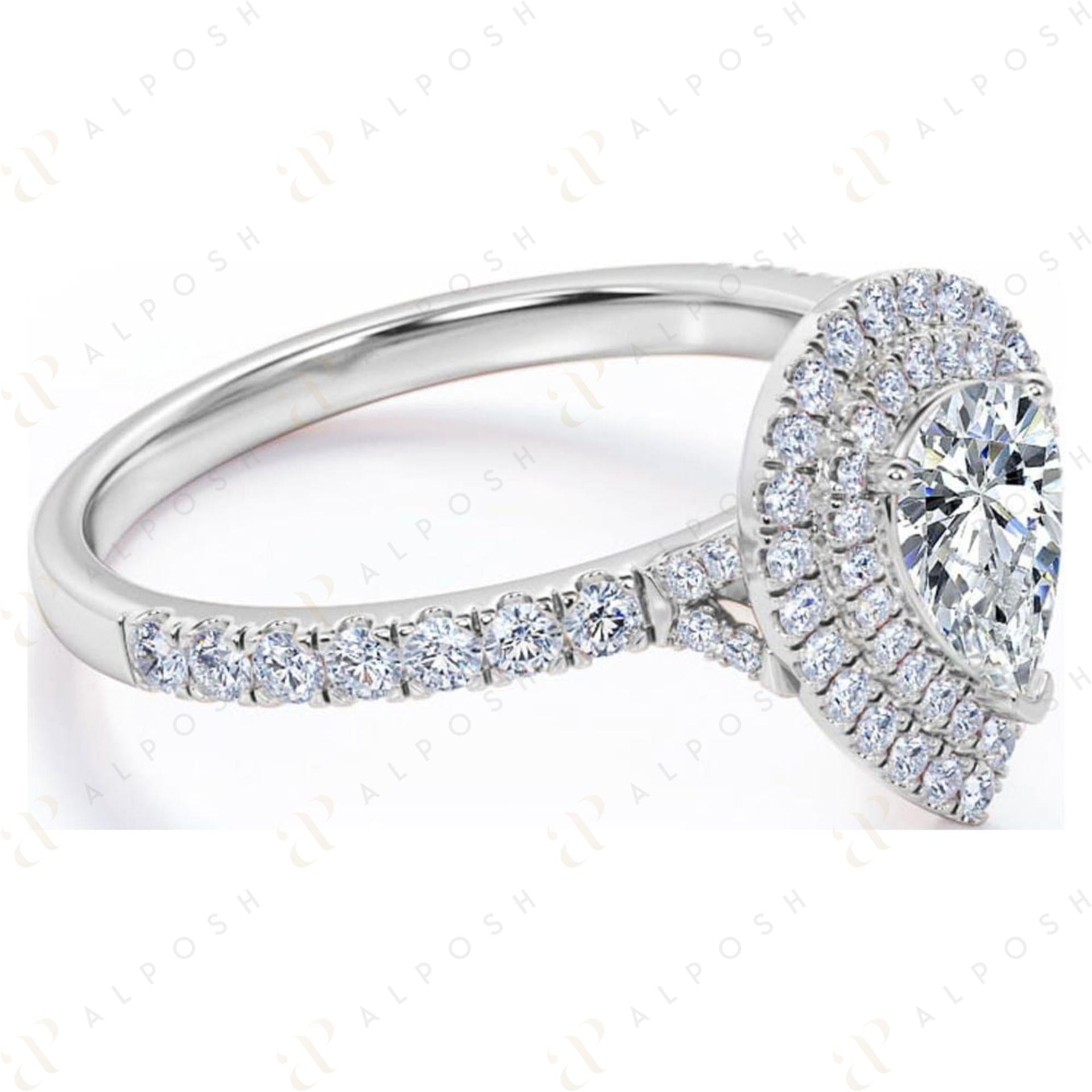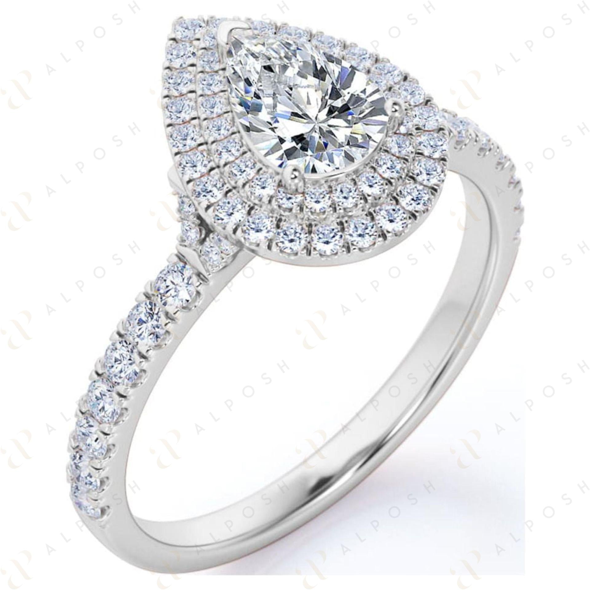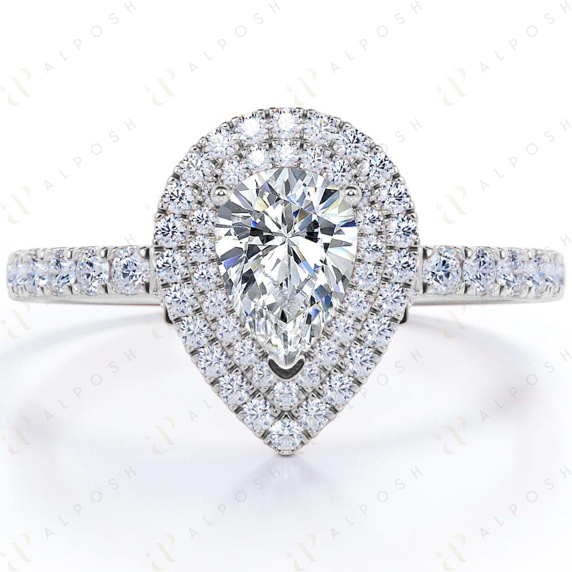 0.70 TCW Pear Cut Double Halo 10K Moissanite Ring for Women