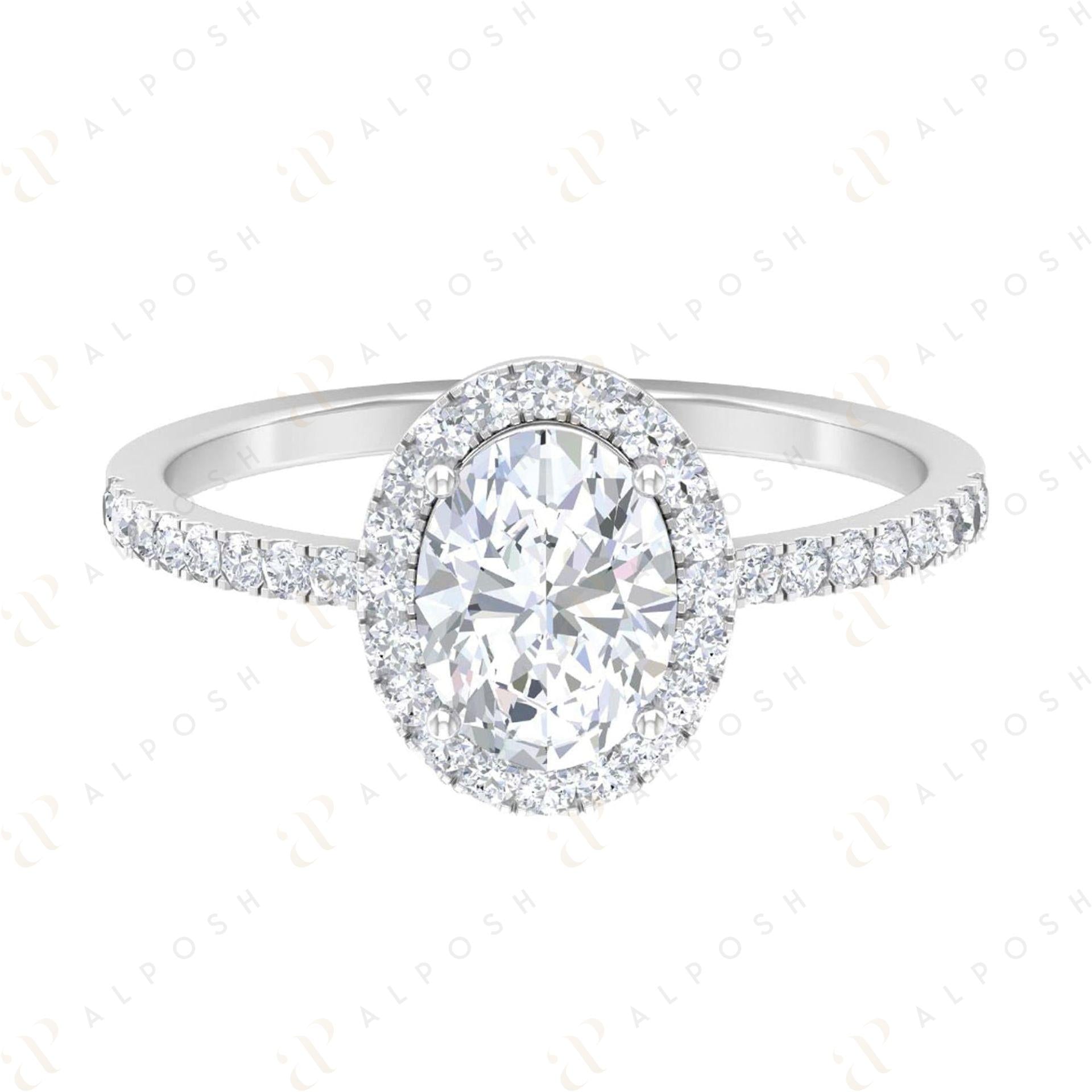 0.85 TCW Oval Cut Halo 10K Moissanite Ring for Women