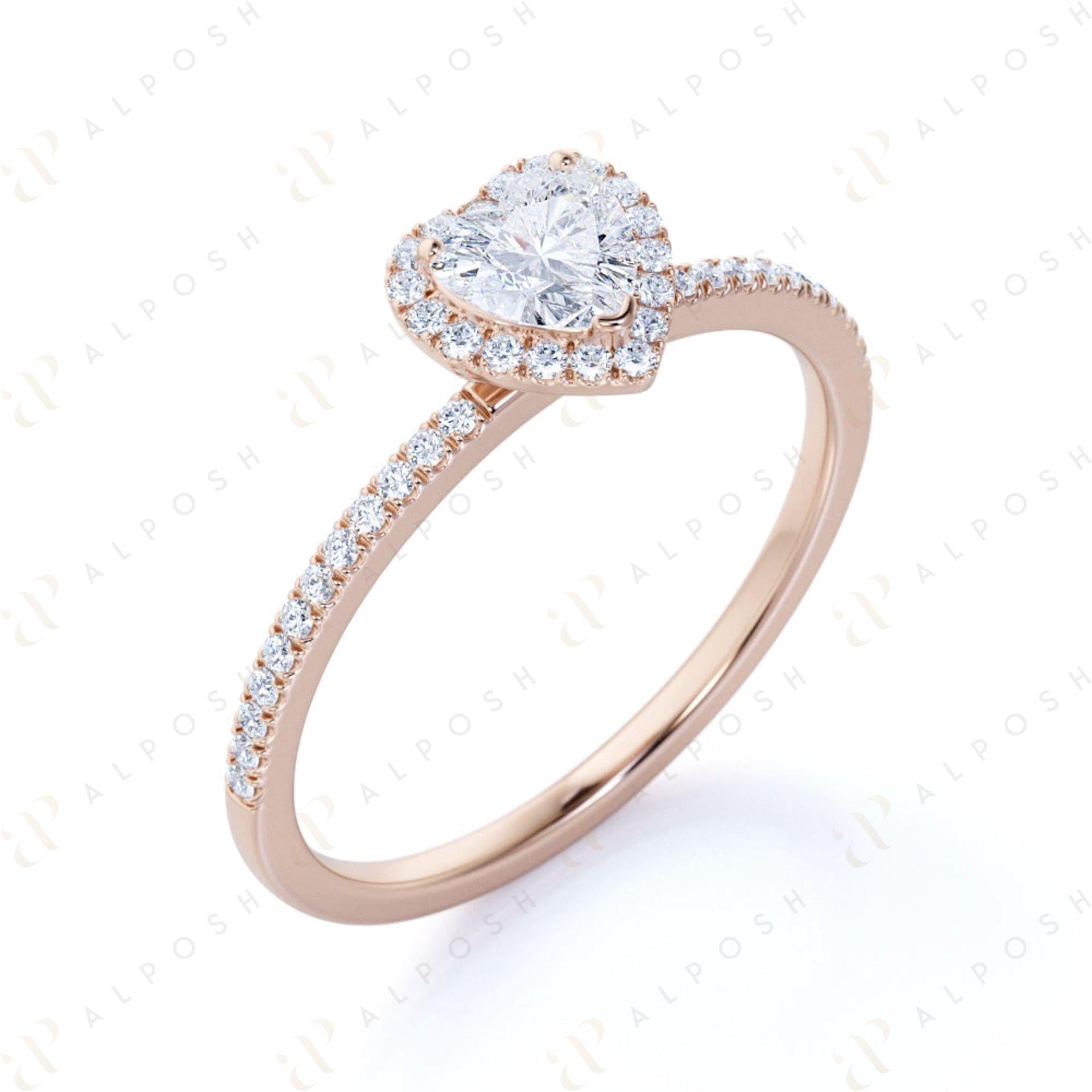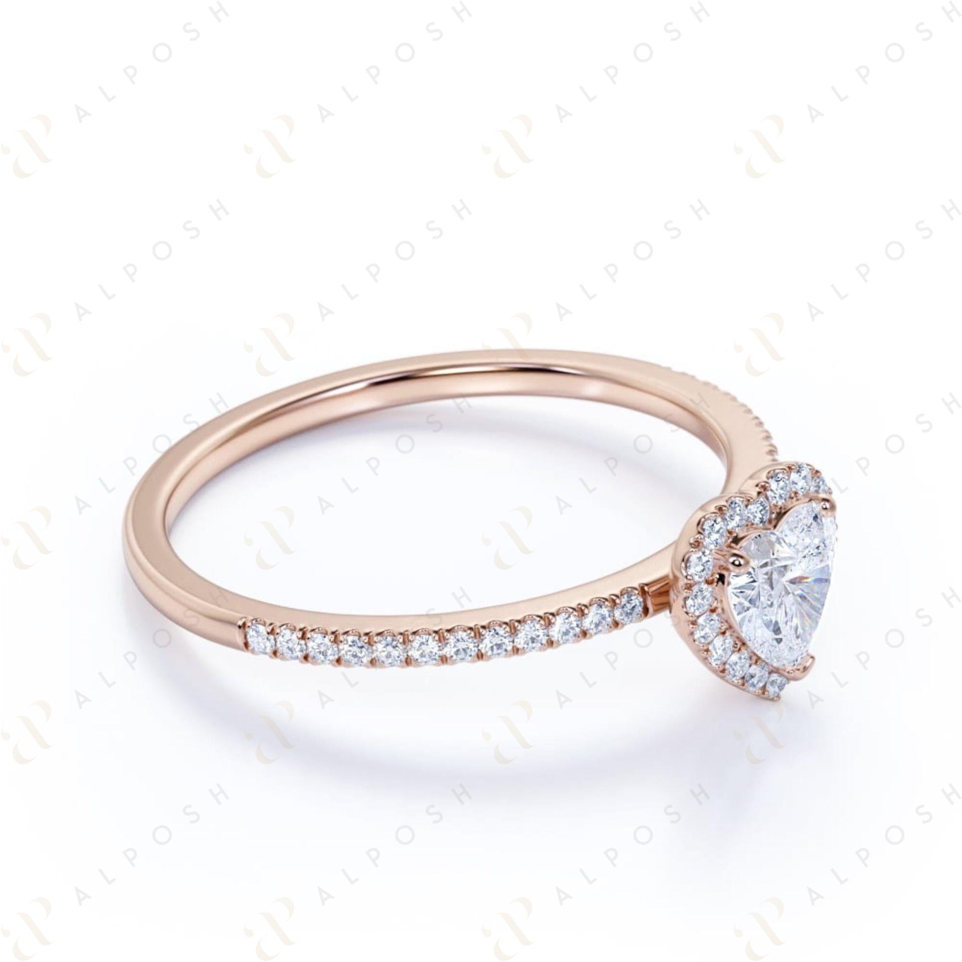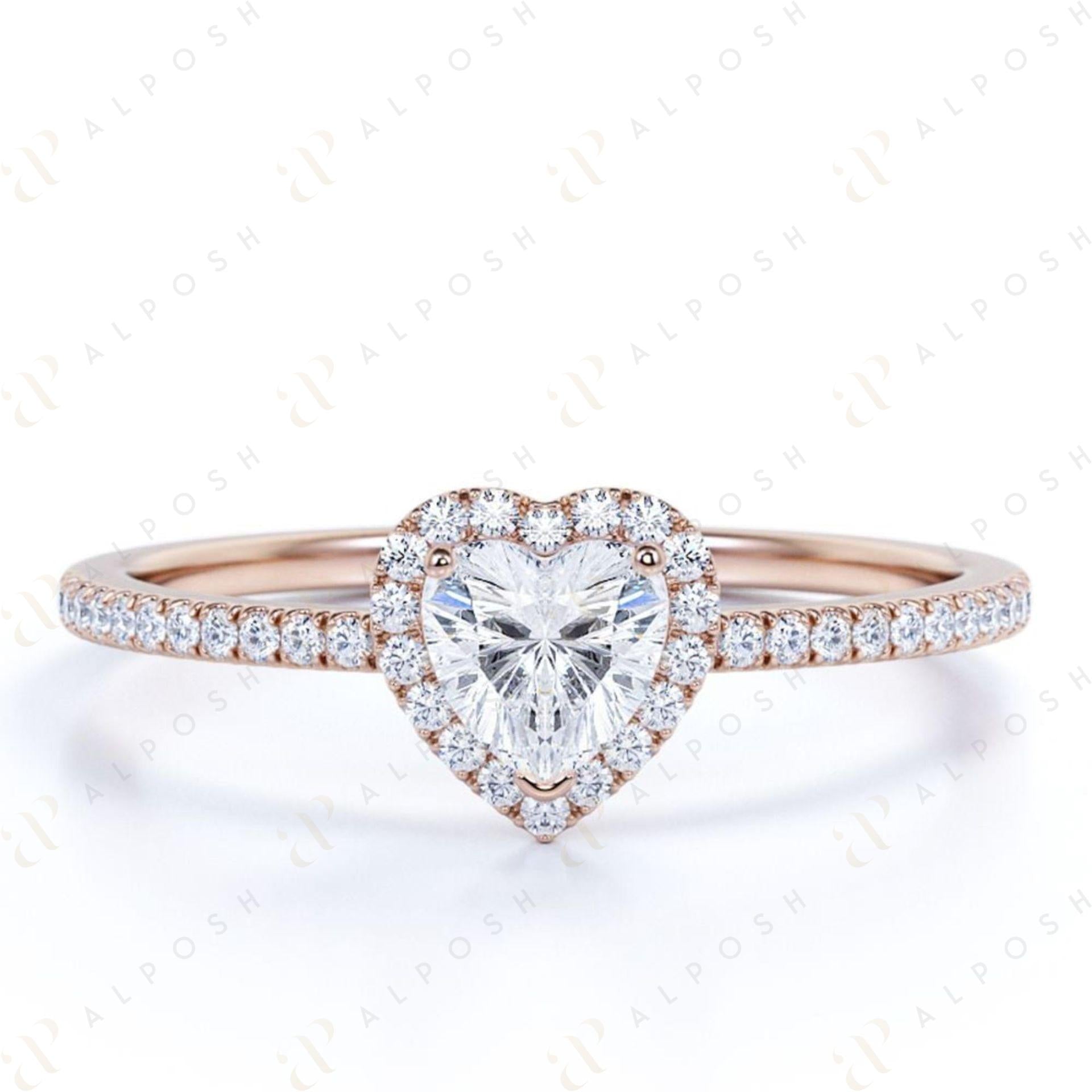 1.00 TCW Heart Cut Halo 10K Moissanite Ring for Women