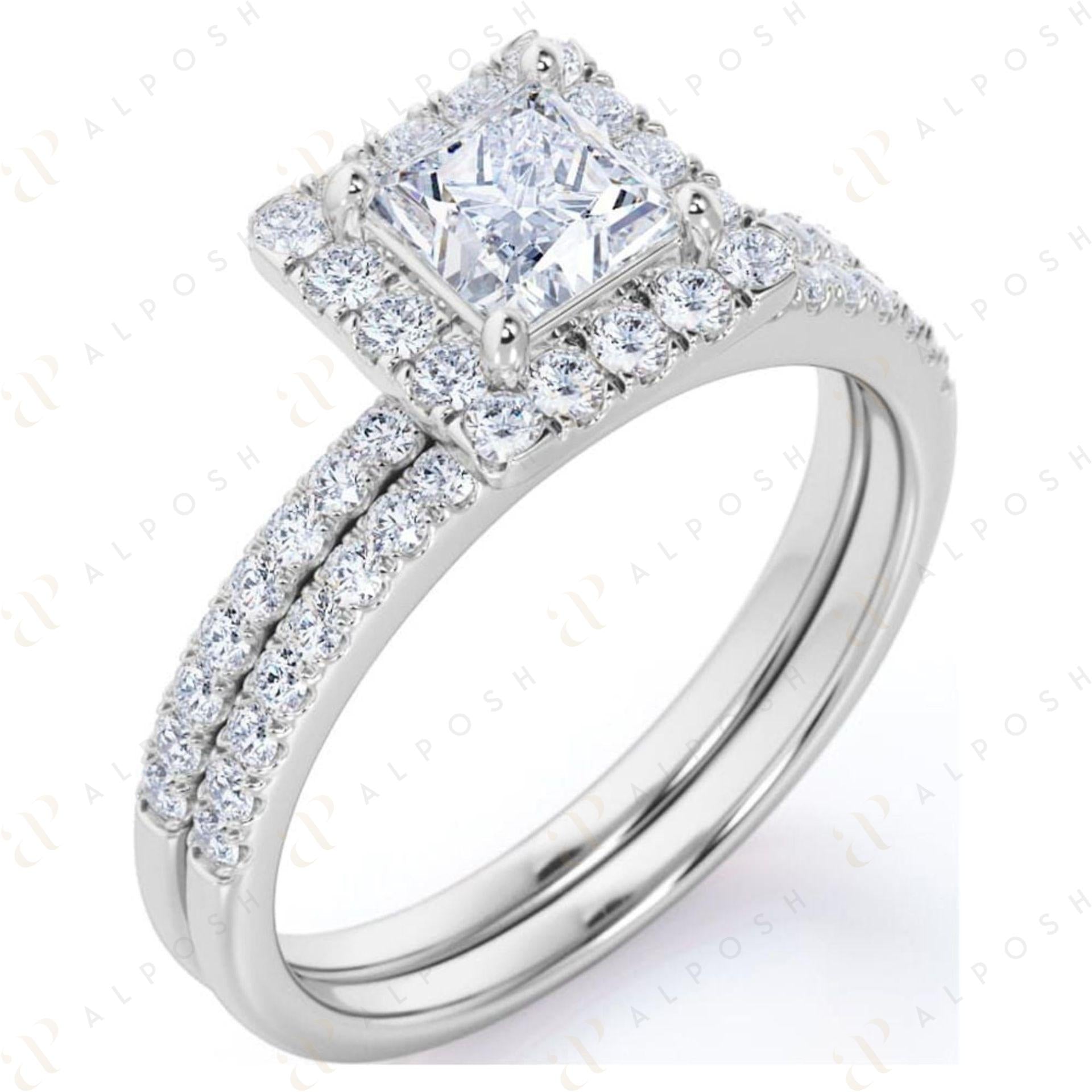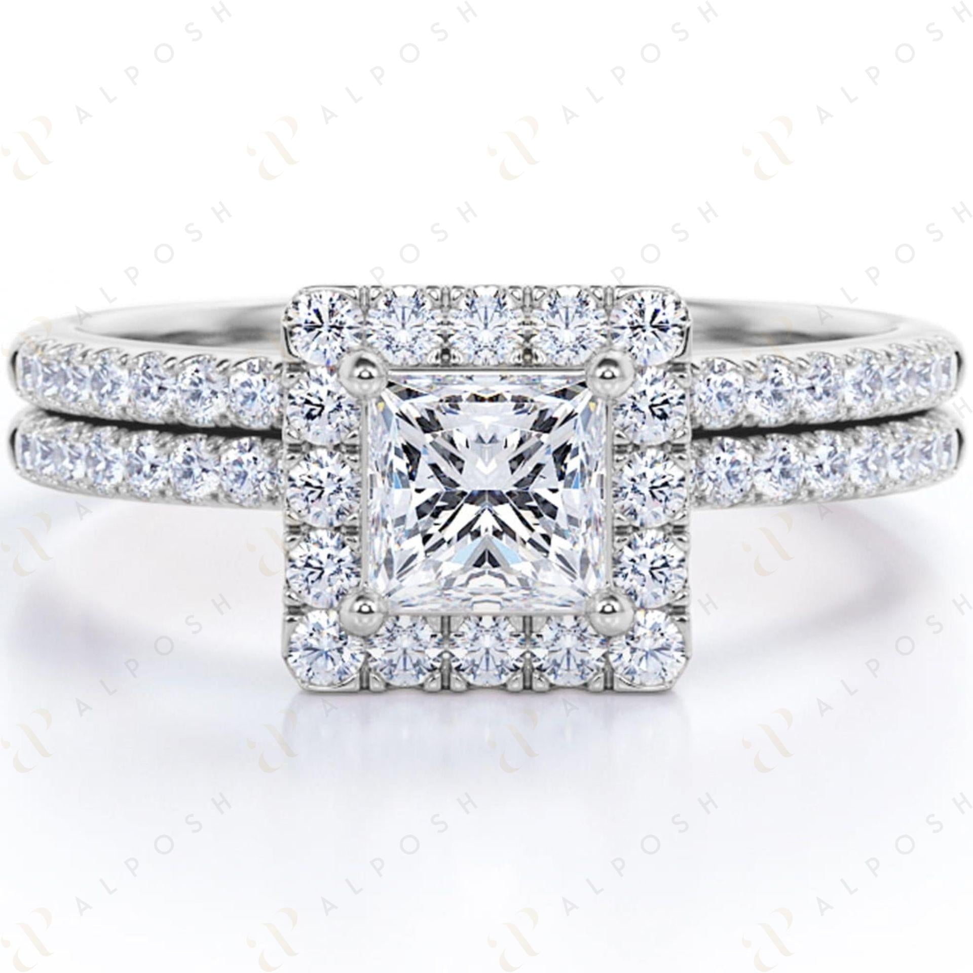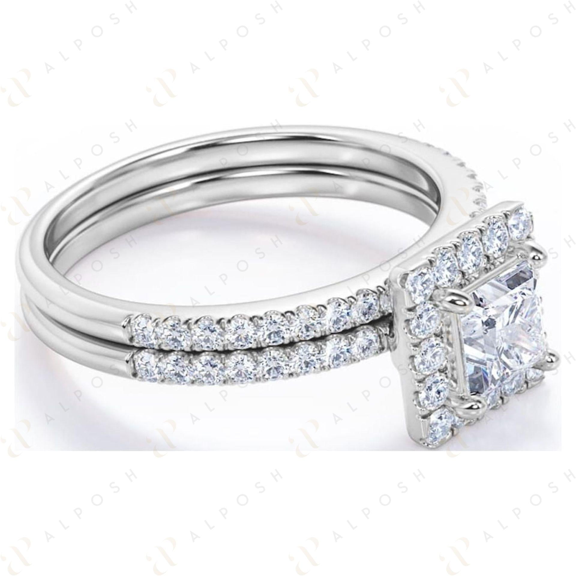 1.20 TCW Princess Cut Halo 10K Moissanite Ring for Women