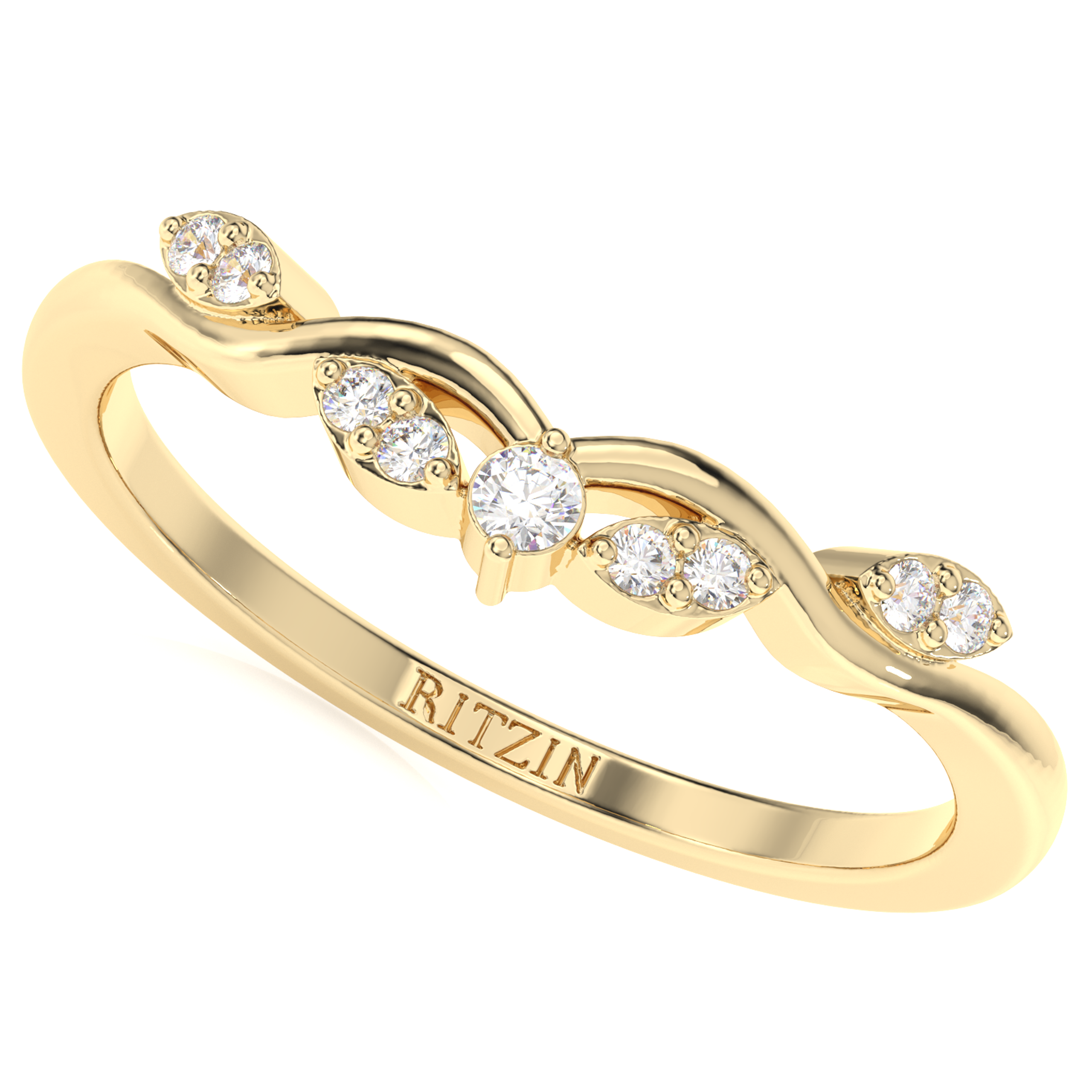 • Adorned with sparkling round-cut white moissanite, each meticulously set to accentuate the organic design and add a touch of brilliance.
