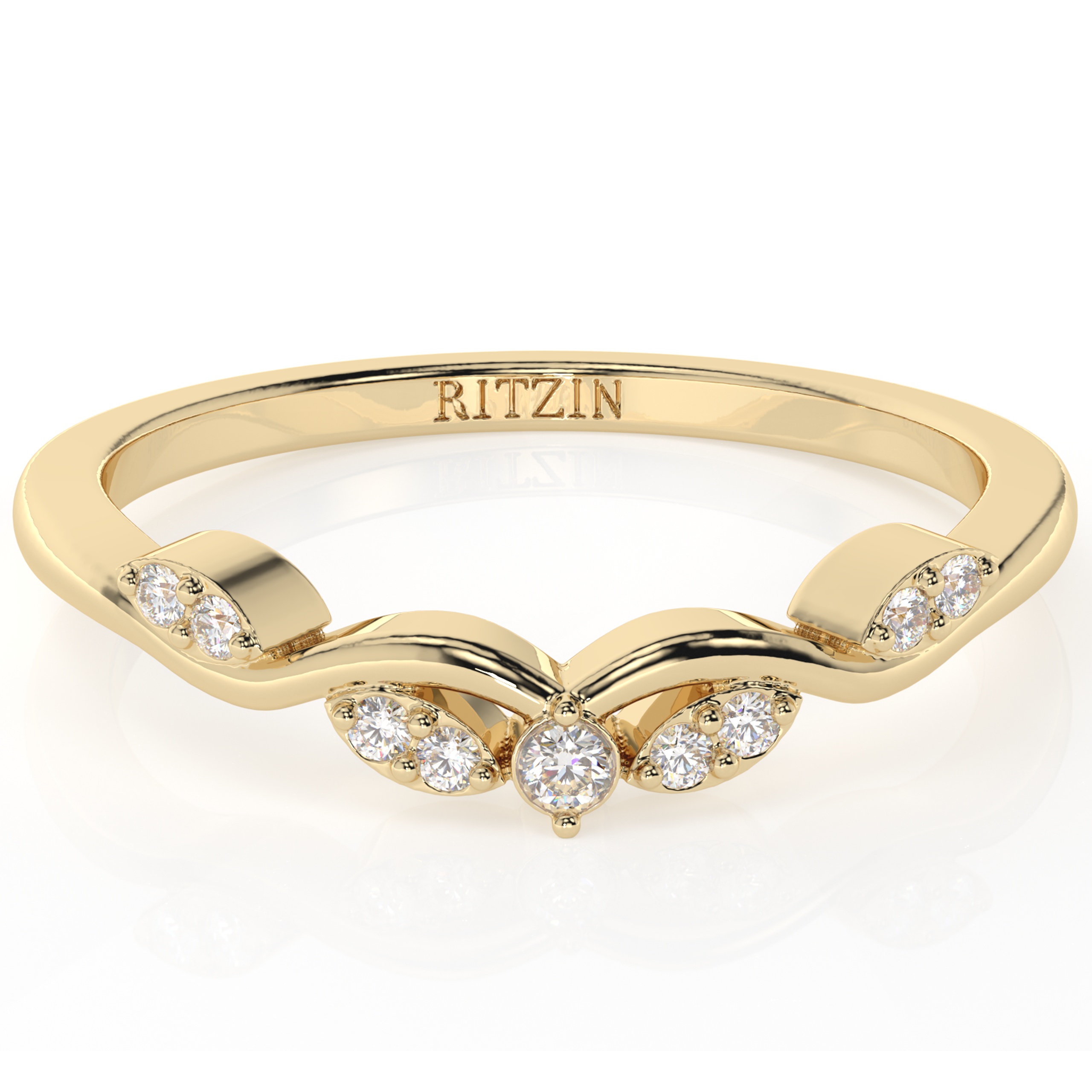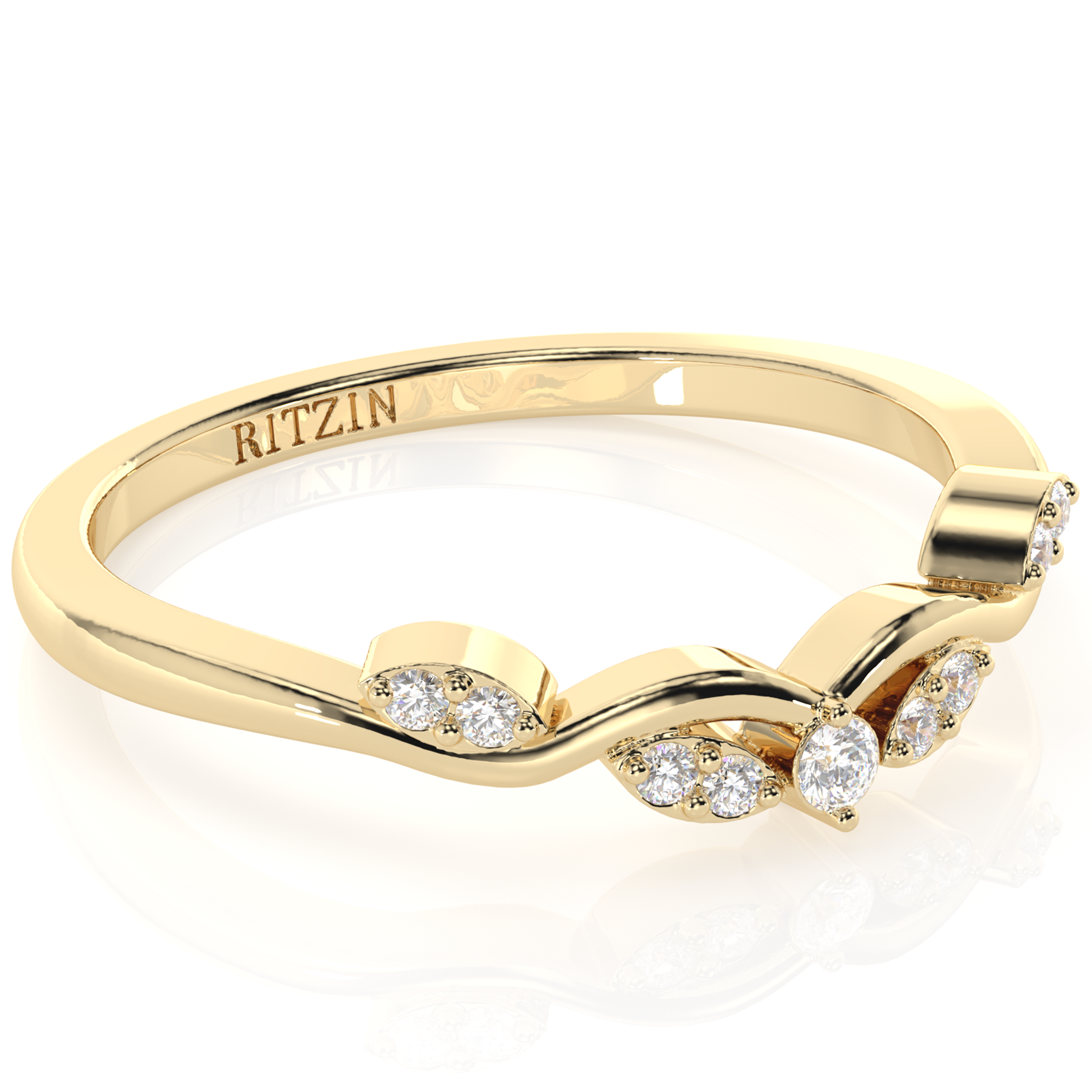 • Stunning round-cut 0.35 carat total weight (cttw) White Moissanite Nature Inspired Leaf Wedding Band designed for her.